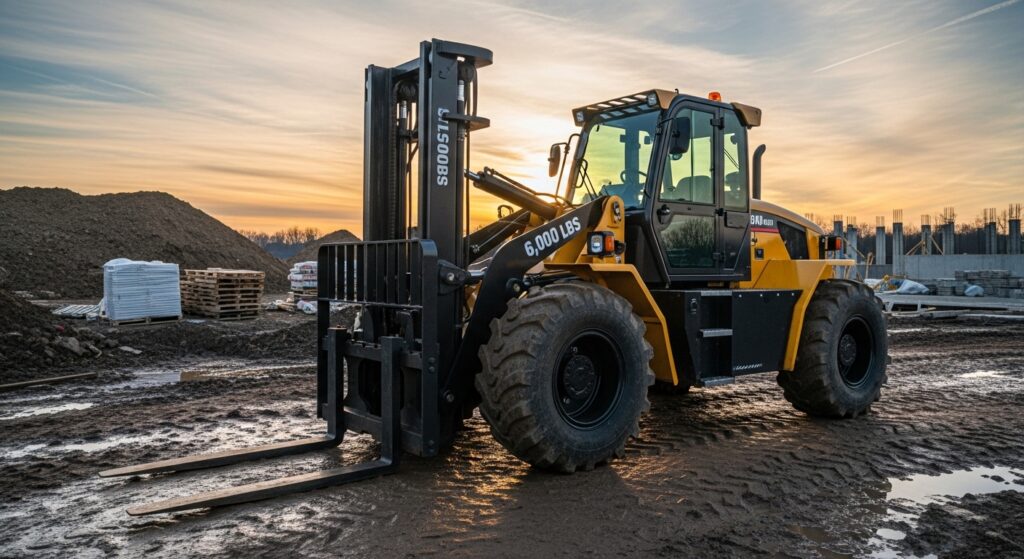 The 6,000 lbs Rough Terrain Forklift is built for tough outdoor lifting and material handling. With its powerful engine and heavy-duty pneumatic tires, it delivers exceptional traction and stability on uneven or muddy ground. Capable of lifting up to 6,000 lbs, this forklift is ideal for construction sites, farms, and industrial operations requiring reliable all-terrain performance.