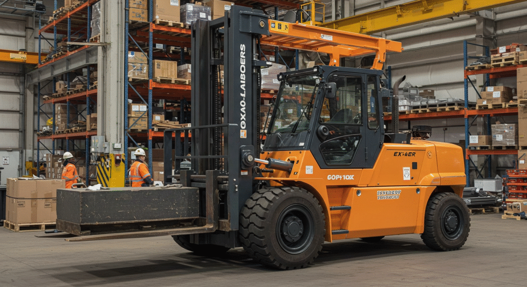 Its robust design allows operators to manage heavy loads with precision while reducing the risk of tipping. This forklift is ideal for steel mills, shipping yards, and large-scale construction projects where standard forklifts cannot meet the demands.
