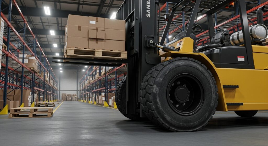 - Cushion Tyres – Ideal for indoor use on smooth concrete floors, ensuring stability and control.