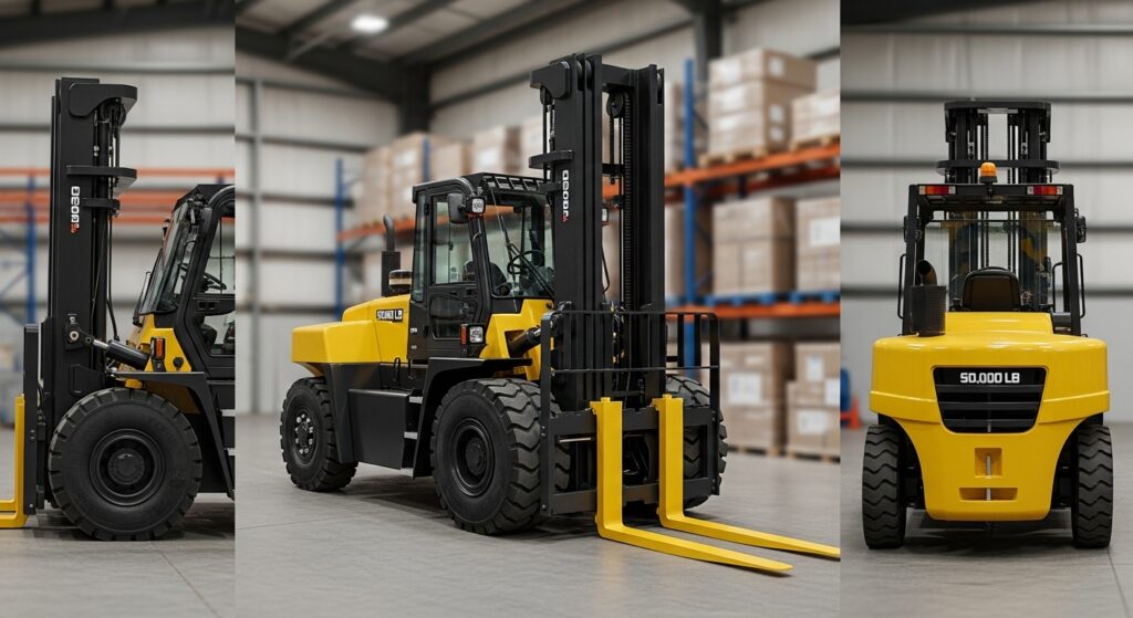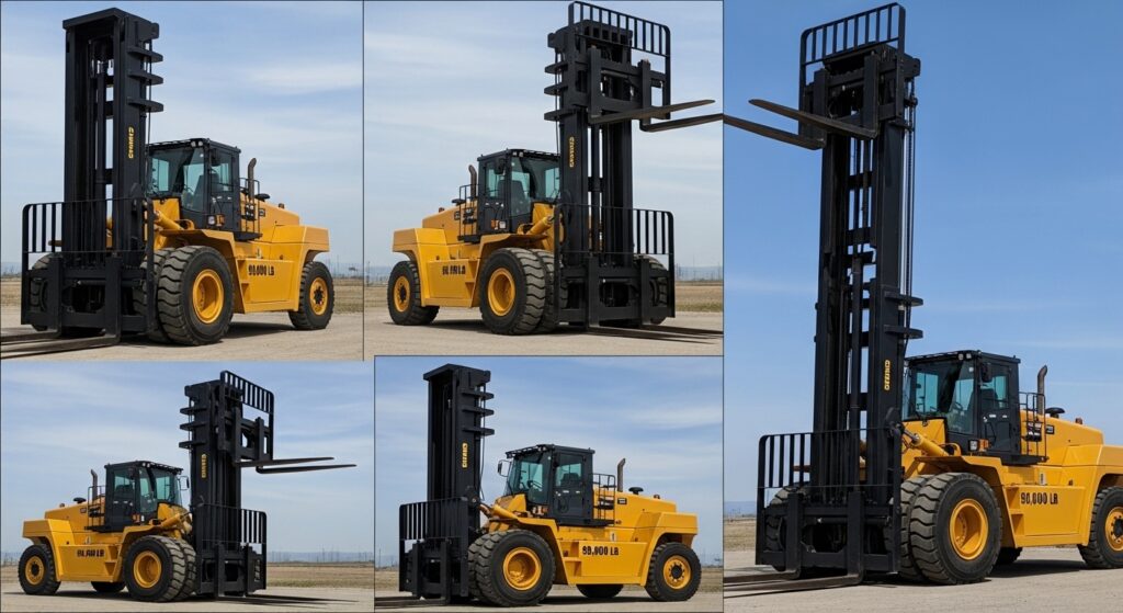 Built to lift up to 90,000 lbs, this forklift ensures unmatched power and reliability for the heaviest industrial material handling needs.